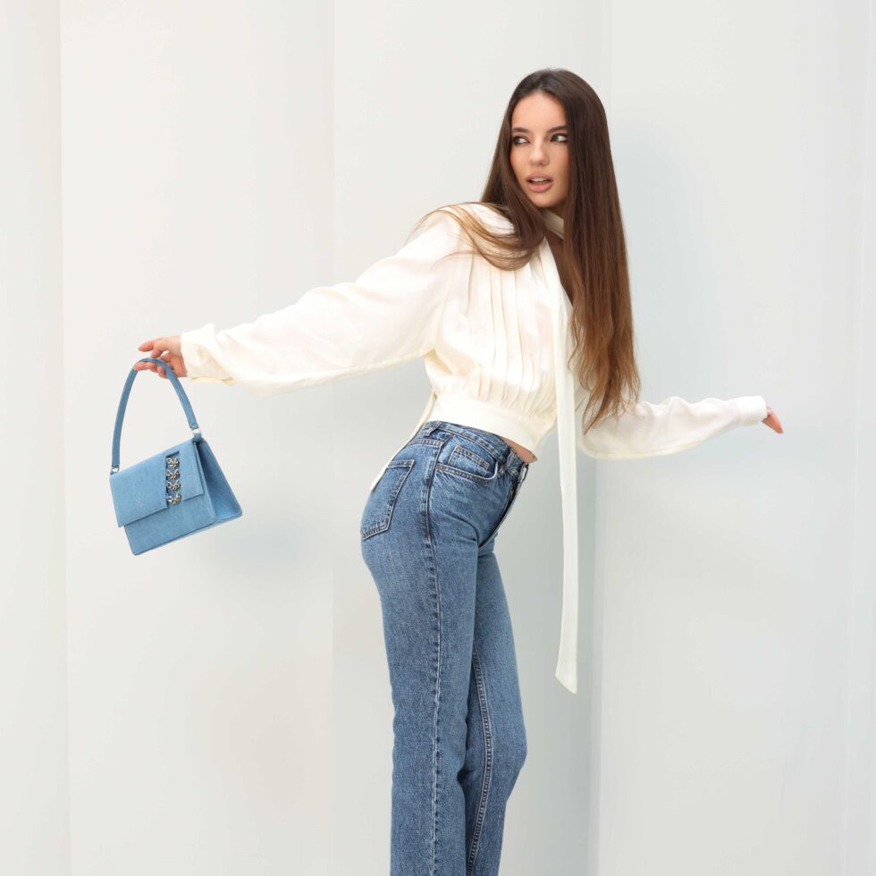 Handmade in Lebanon, this eco-friendly denim handbag offers durable design, subtle elegance, and everyday practicality in a unique, upcycled form.